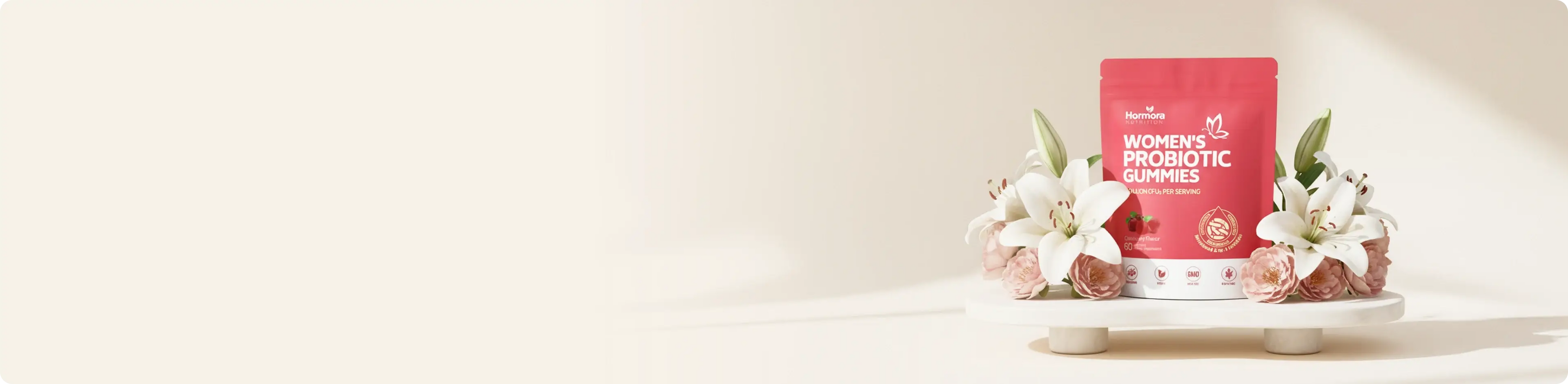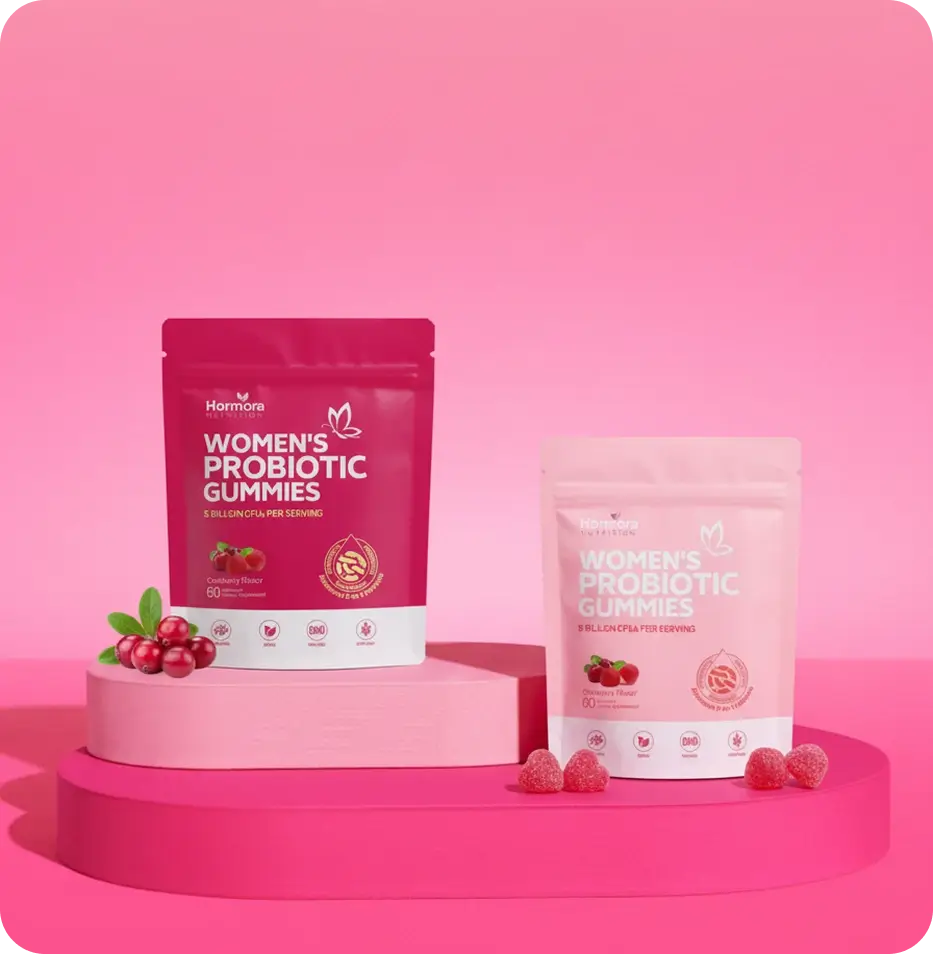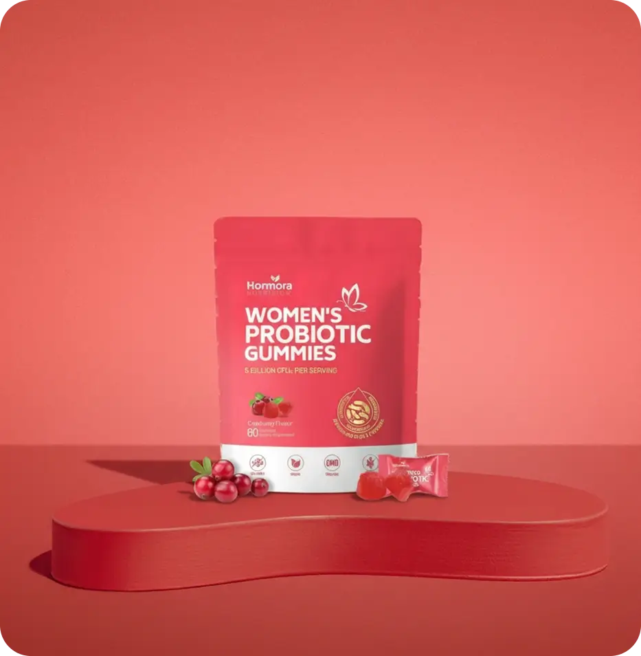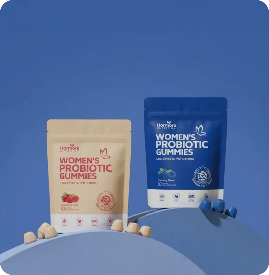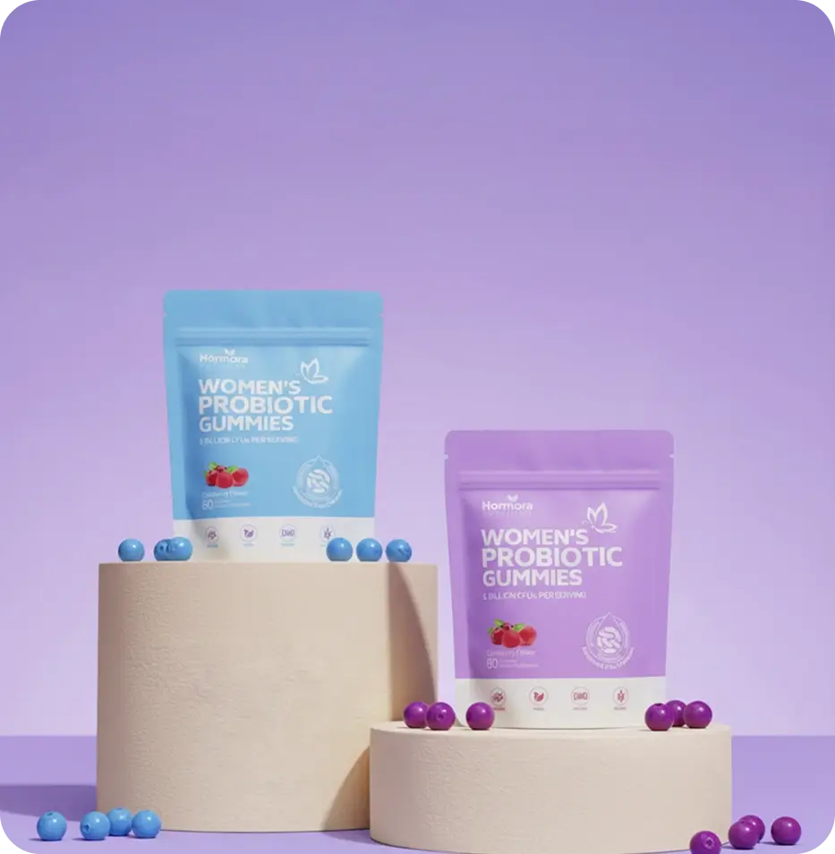 Hormora® is designed specifically for women’s hormone and gut balance, combining targeted probiotics with essential vitamins.